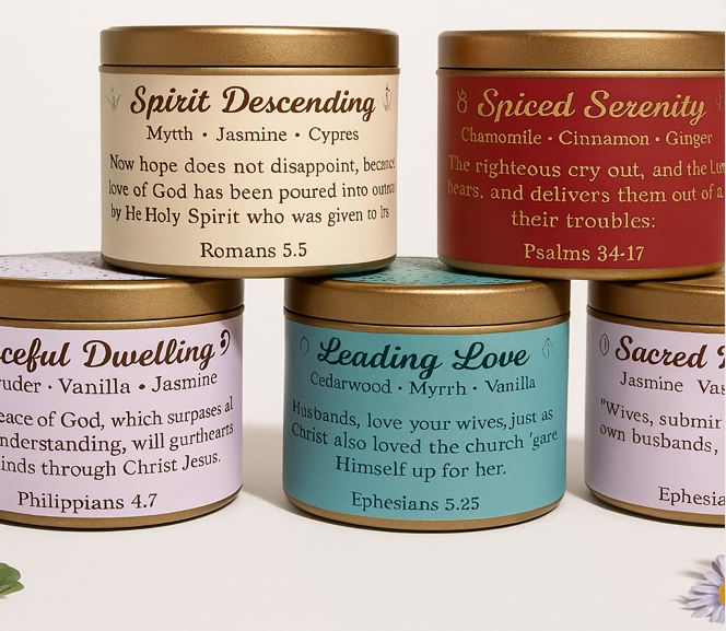 Our candles are thoughtfully designed to bring warmth, beauty, and purpose to your everyday life, while honoring both quality and the Holy Trinity.